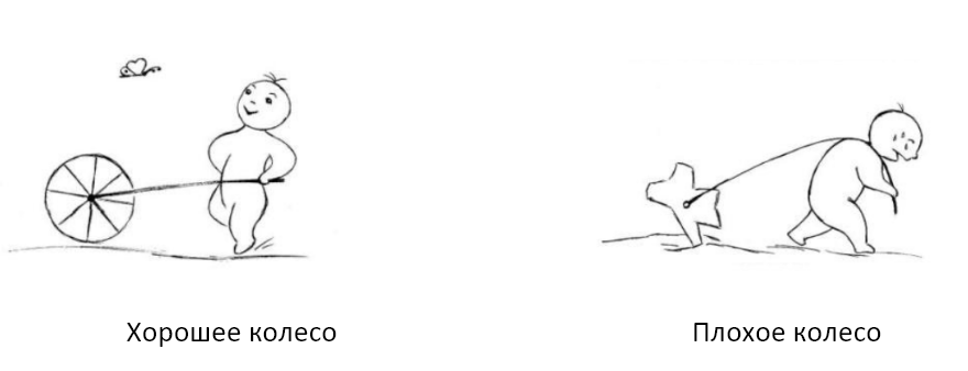 Бывает и обратная история. Если колесо жизненного баланса представляет из себя непонятную конструкцию, похожую не на круг, а больше на какой-то плуг, то и человек уже не весело и припеваючи катится по жизни, а тащит этот плуг за собой, обливаясь потом и проклиная все на свете.