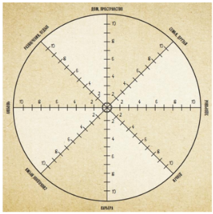 При помощи графической модели мы визуализируем сегменты колеса жизненного баланса.
