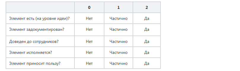 Описание системы оценки каждого элемента приведено в таблице: