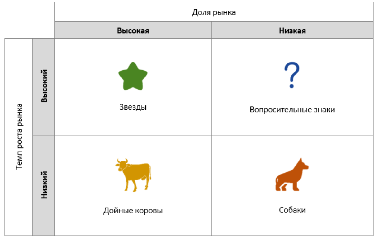 - Стратегия: Максимальные инвестиции в развитие. Именно «Звезды» со временем становятся «Денежными коровами».