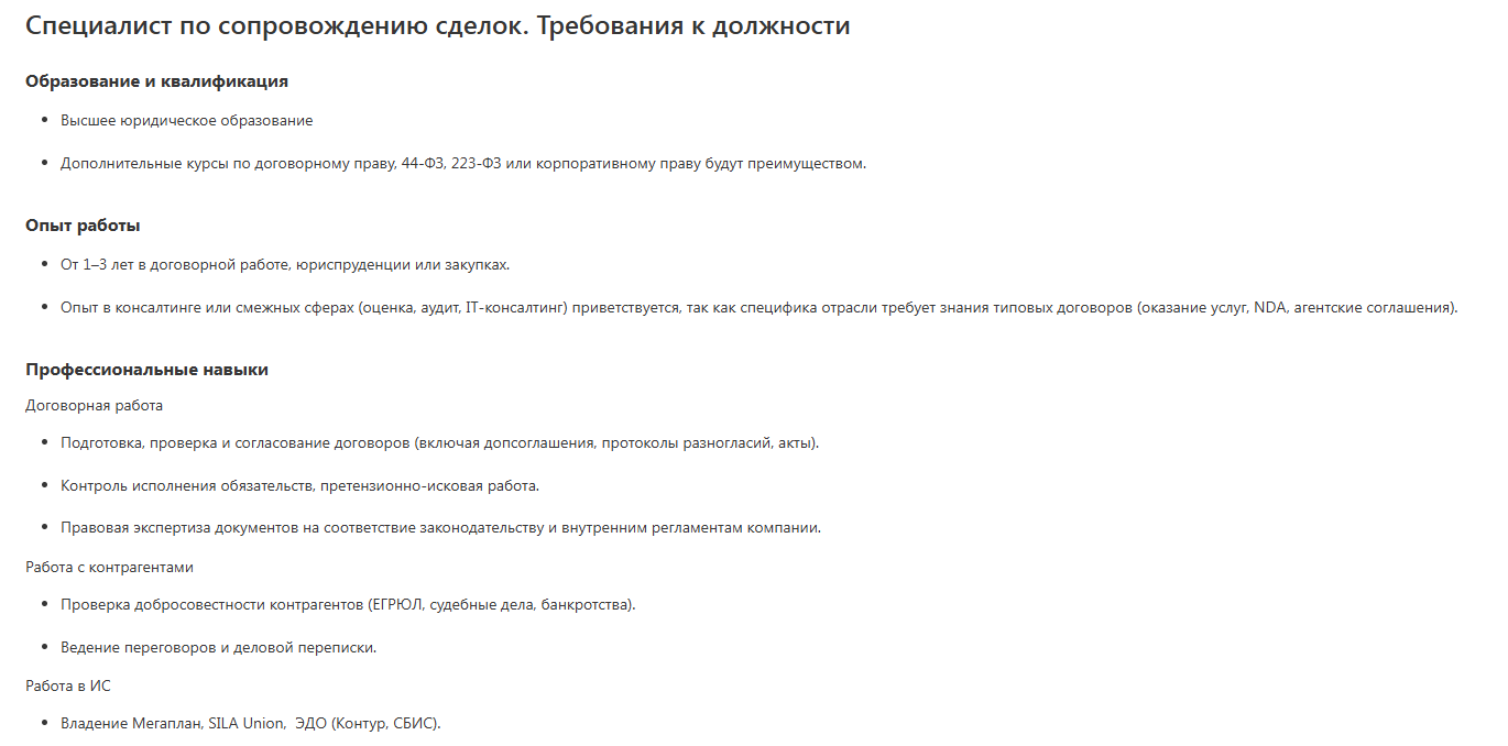 Рисунок 4. Требования к сотруднику на wiki-страницах (фрагмент)