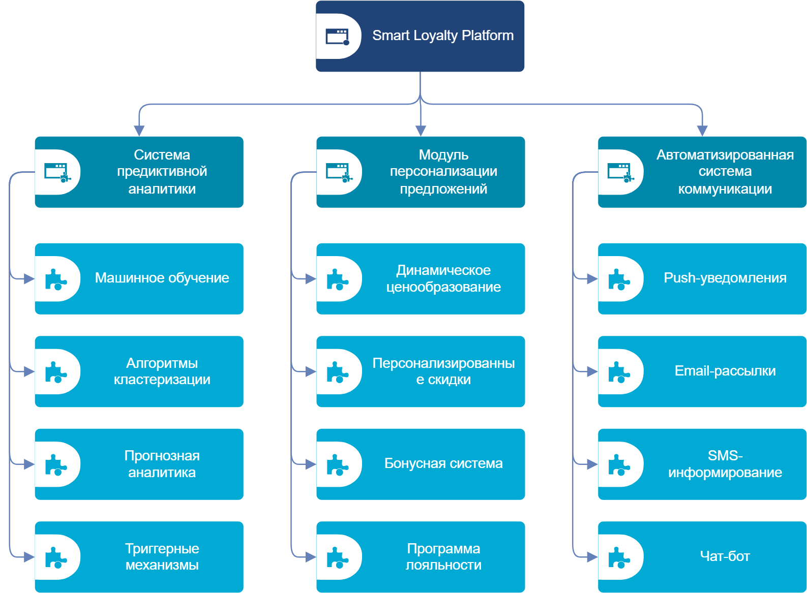 Smart Loyalty Platform — комплексная платформа автоматизации, интегрированная в эквайринговый сервис, которая анализирует поведение клиентов и автоматически генерирует персонализированные предложения для удержания покупателей.