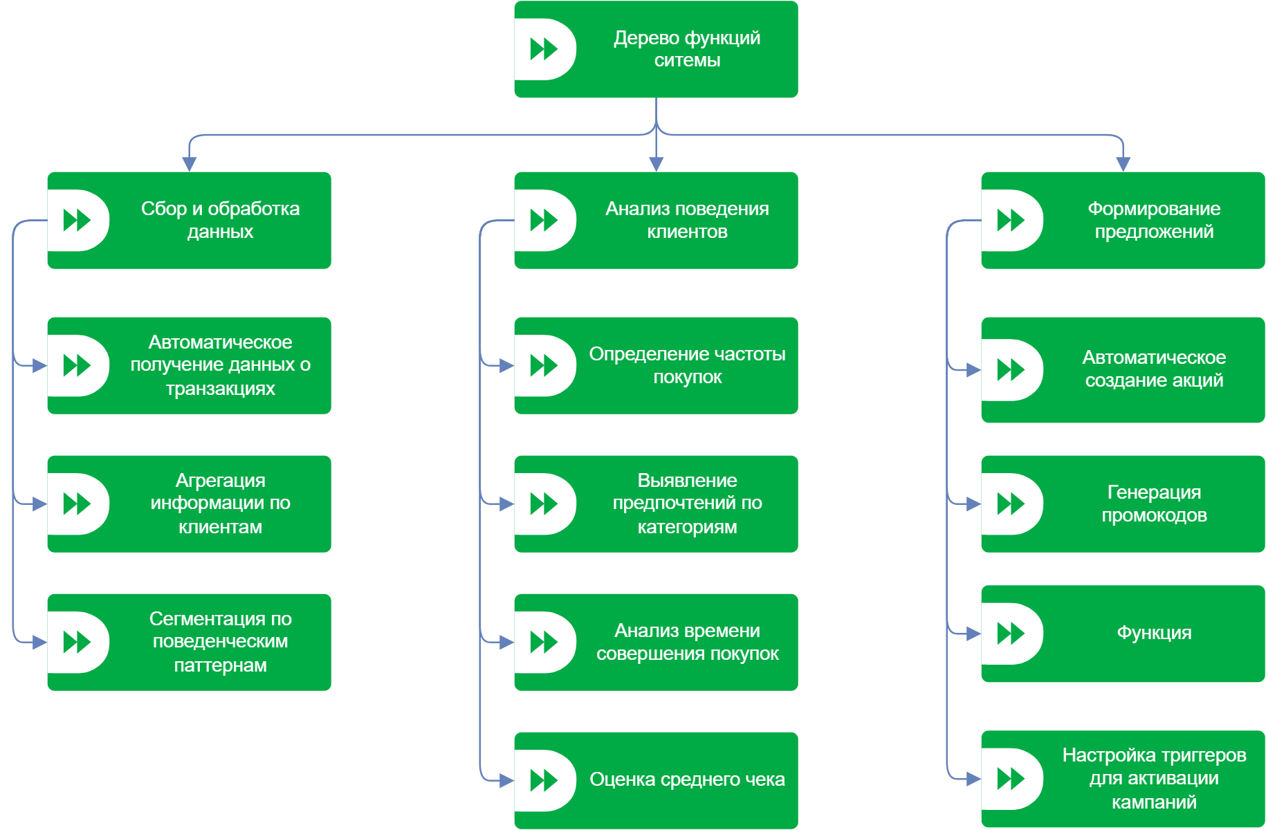 Схематично функционал системы представлен на рисунке 2. Модель разработана в программном продукте SILA Union, тип модели - дерево функций.